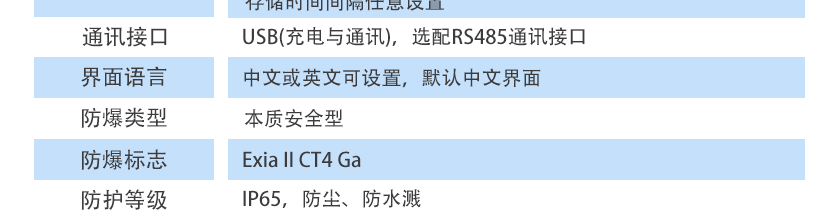 USB(充電與通訊),選配RS485通訊接口 |