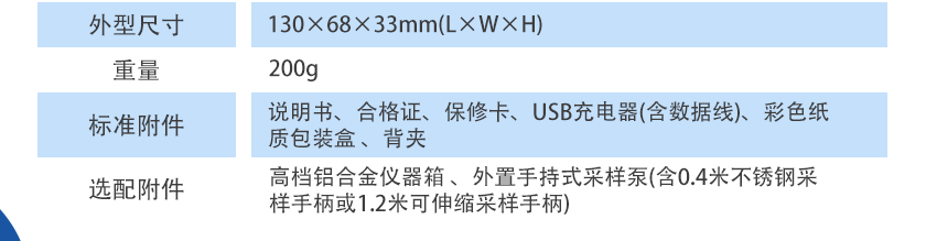 擴(kuò)散式測量,可選配采樣手柄(外置手持式采樣泵) |