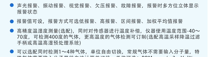 -40℃~+70℃ ,選配高溫采樣降溫過濾手柄,可檢測(cè)400度或更高溫度的煙氣濃度 |