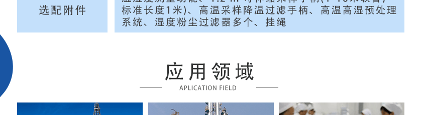 溫濕度測(cè)量功能、1.2 m 可伸縮采樣手柄(1-10米軟管,標(biāo)準(zhǔn)長(zhǎng)度1米)、高溫采樣降溫過濾手柄、高溫高濕預(yù)處理系統(tǒng)、濕度粉塵過濾器多個(gè)、掛繩 |