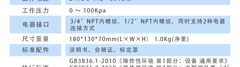 3/4″NPT內螺紋、1/2″NPT內螺紋,同時支持2種電器連接方式 |