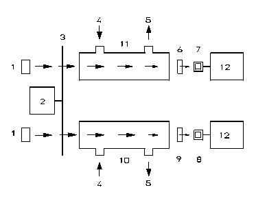 紅外光源 ( 1 ),是通過電子加熱,并且發(fā)出寬帶紅外光。光束被旋轉的葉片( 切光器 )( 3 ),間斷切斷,產生交變光。切光馬達 ( 2 ),是由石英振蕩器控制。因此,紅外光的切光頻率是相當穩(wěn)定的。紅外光通過有樣品氣和載氣混合氣流通過的測量池 ( 10,11 )時,被吸收。 而紅外光被吸收的強度與氣體濃度有關,紅外光束通過測量池后,經(jīng)過濾光片( 6,9 ),只有紅外光中窄帶通過。所選擇的中頻帶波長,是對氣體測量呈最大吸收的波長,通過濾光片后,光束強度是根據(jù)紅外池中氣體濃度來決定的,最后紅外光束照射到紅外檢測器 (7,8 )上,得到與光強成正比關系的電信號。