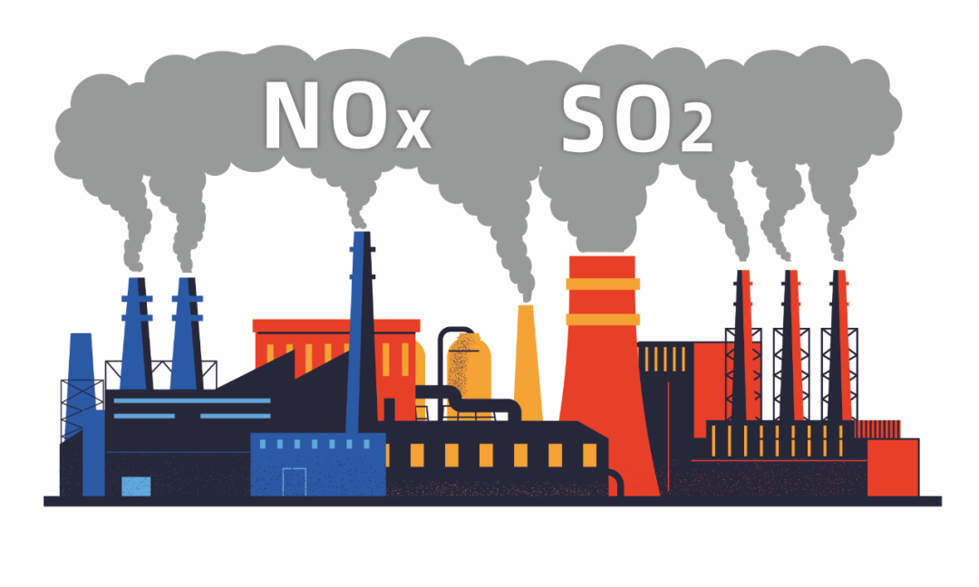 3)氮氧化物(NOx:火電廠排放的氧化氮中主要是一氧化氮。二氧化氮刺激呼吸器官,對肺有明顯損害。一氧化氮則會引起高鐵血紅蛋白癥,并損害中樞神經。