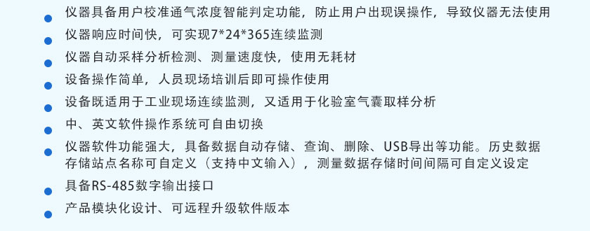 (10)設備既適用于工業現場連續監測,又適用于化驗室氣囊取樣分析