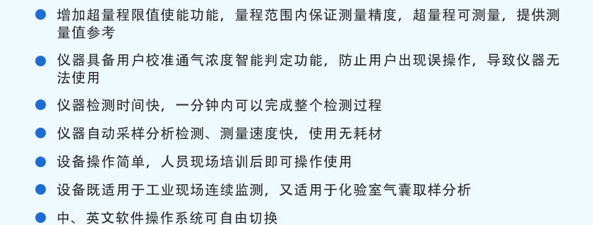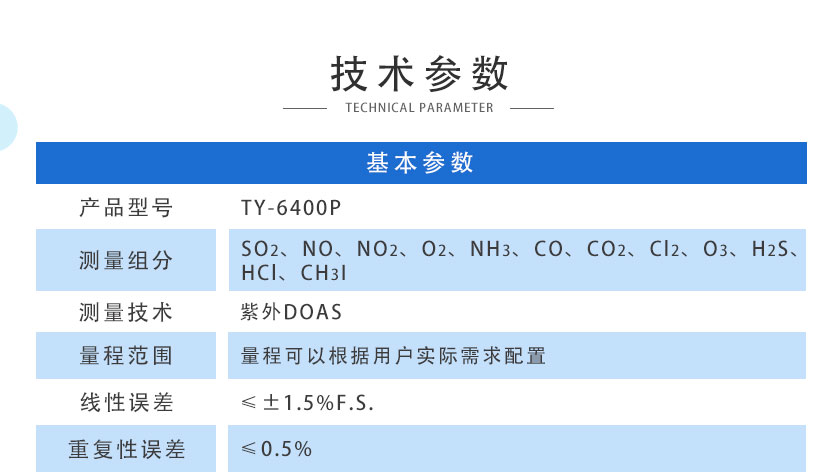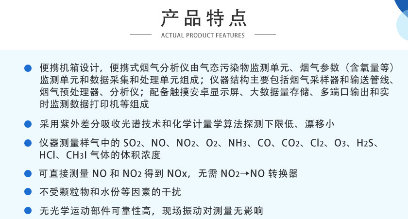 SO2、NO、NO2、O2、NH3、CO、CO2、Cl2、O3、H2S、HCl、CH3I |
