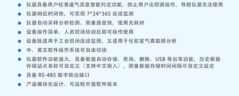 9)儀器響應(yīng)時(shí)間快,可實(shí)現(xiàn)7*24*365連續(xù)監(jiān)測(cè)。