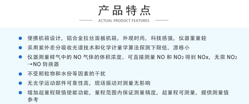 3)儀器測量樣氣中的NO氣體的體積濃度??芍苯訙y量NO和NO2得到NOx,無需NO2→NO轉換器。